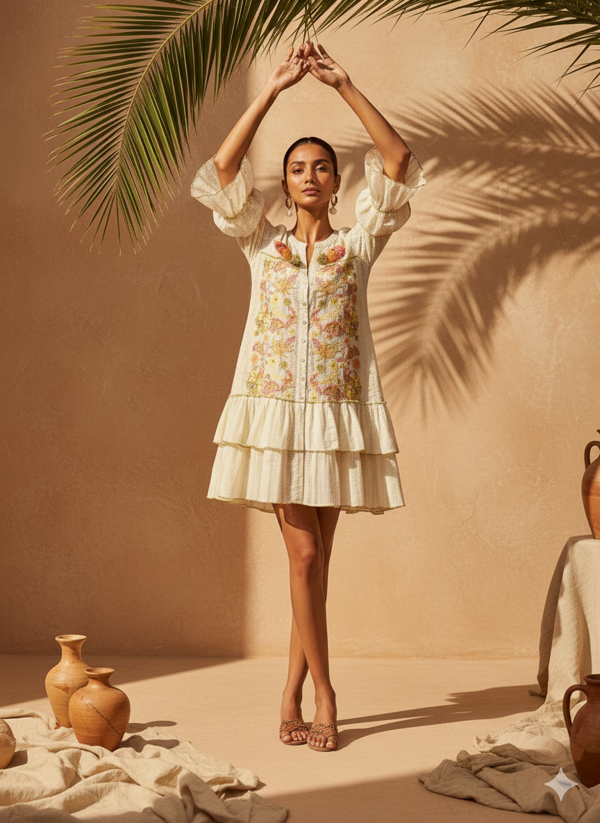 Nakışlı İthal Hint Pamuk Gömlek Elbise